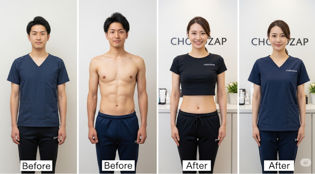 ダイエットの成果として最も分かりやすいのが、ビフォーアフターの比較です。実際にチョコザップを利用して結果を出した人々の報告には、驚くべき数値の変化が見られます。